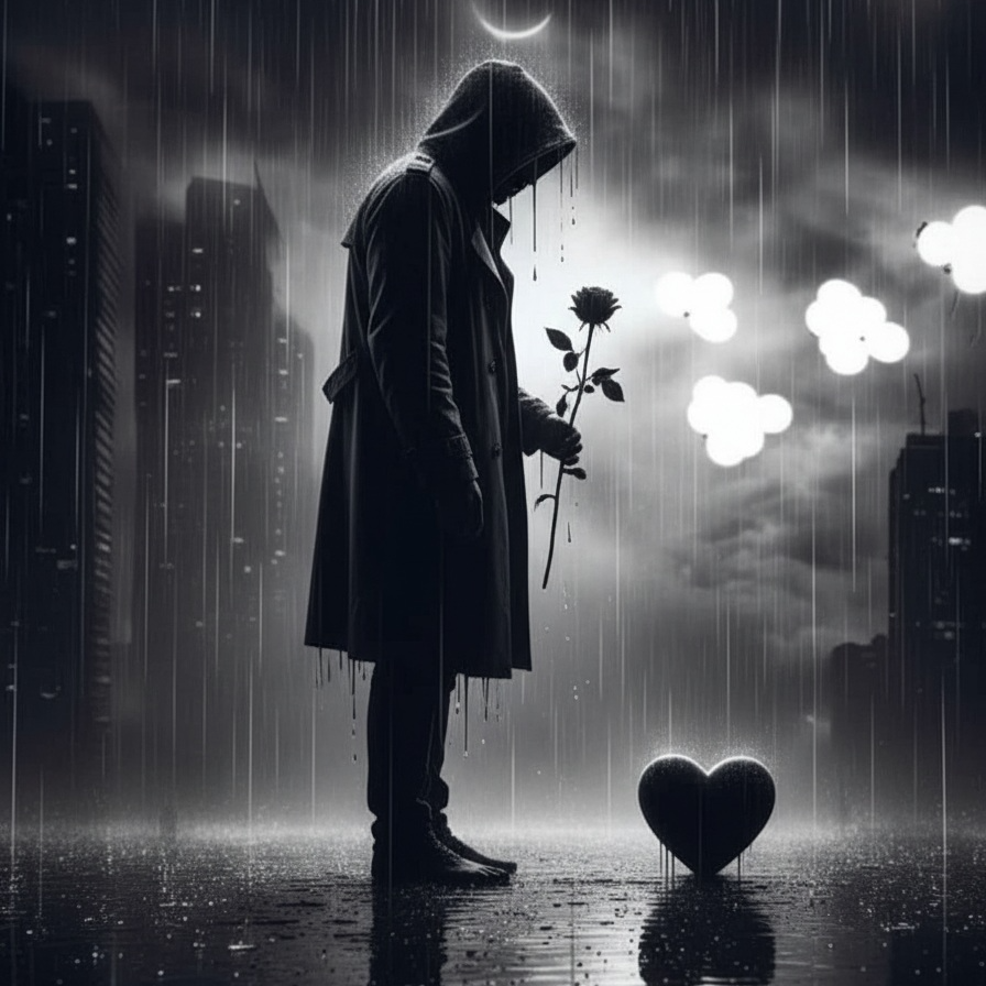 male vocals, urban poetic lyrics, groovy bassline, punchy dry drums, mid-tempo rhythm, gritty electric guitar, emotional storytelling, introspective mood, street atmosphere, cinematic tension, echo effects, minor key, dramatic build-up