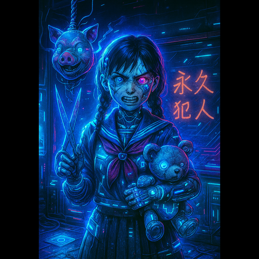 Imagine a fusion of Blade Runner aesthetics, Persona 5’s darker soundtracks, and Gorillaz-style vocal textures, Minimalist but rhythmically captivating