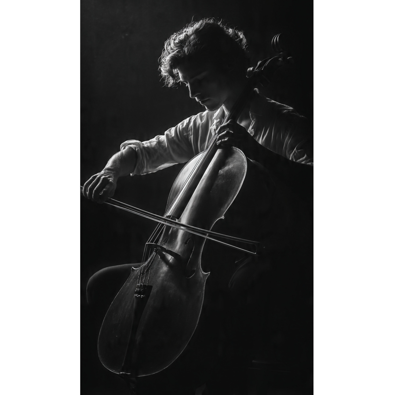 solo cello dominates, orchestra replies with dark motifs and powerful tuttis; winds add eerie color; brass gives ceremonial weight, Concept: 5‑minute original Baroque cello concerto with full orchestral force; themes rise from the cello and spread across the ensemble through imitation, Structure: ominous orchestral intro → solo cello entrance → ensemble dialogue → slow dark middle → fiery final section → solemn cadence ending, Mood: mysterious, powerful, noble, intense — full‑orchestra