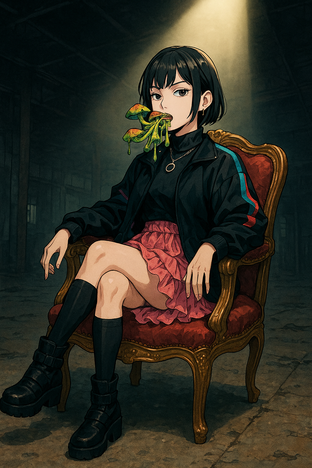rap, Dark G-Phonk / DnB hybrid: swung Memphis-style samples over rapid-fire breakbeats, snarling bass and eerie bell stabs, Verses half-spoken, half-rapped in an alto male register, tight and close-mic’d; hook explodes with shouted gang vocals, distortion, and widened reverb, Energy climbs from tense simmer to feral release by the last chorus, with glitchy fills and sudden drops to emphasize key lines, male vocals, drum and bass