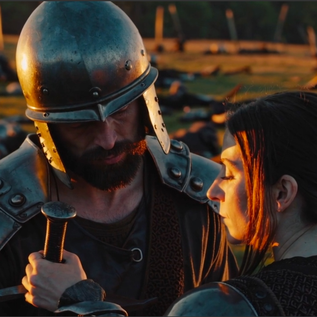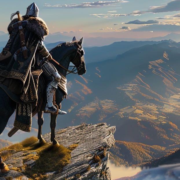 Epic trumpets and tubes, epic music, melodic, heavy basses, soft woman voice, dramatic, war drums