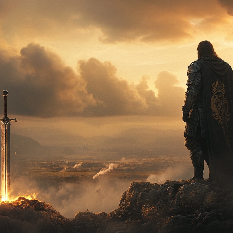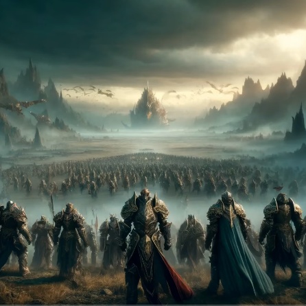 Drum and bass epic dramatic song futuristic with parts of 90โs style, Add vocals of men inspired lord of the rings
