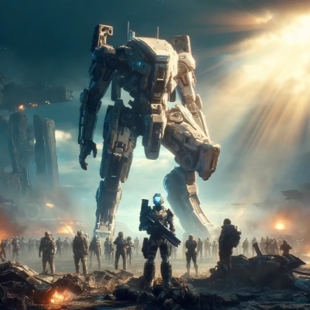 Epic music scifi game trailer, melodic, scifi instruments, heavy basses, choir voice, dramatic