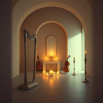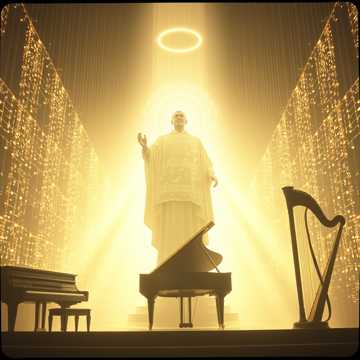 Instrumental, grand and transcendent, Full ensemble: string quartet + brass quartet + piano + harp, Rising dynamics, luminous harmonies, symbolizing father’s soul ascending, Atmosphere: majestic, eternal, uplifting