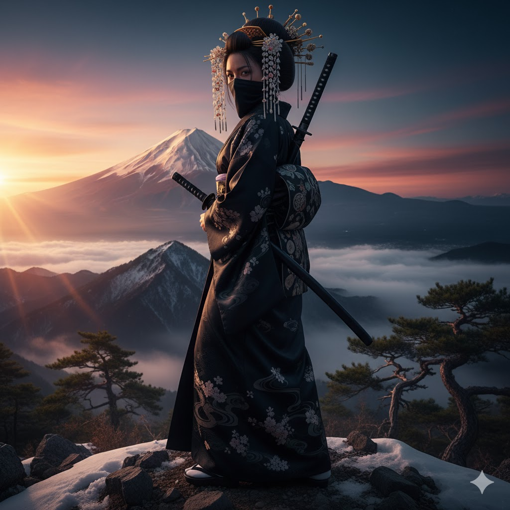 Description: Electrifying "Shogun Funk" anthem with the commanding "big-sister" spirit of Shogun Geisha, Features relentless funky slap bass, electric guitar cuts, and fast rock drums mixed with taiko drums, Traditional elements include fierce shamisen (Kaede) and soulful shakuhachi (Takehiro) solos, The sound is "Kiwami Funk"—Japanese ultra-soul meets disco fire, layered with grand strings and brass, and sparkling bells, Mood: Pride, challenge, and heroic awakening on Mount Fuji