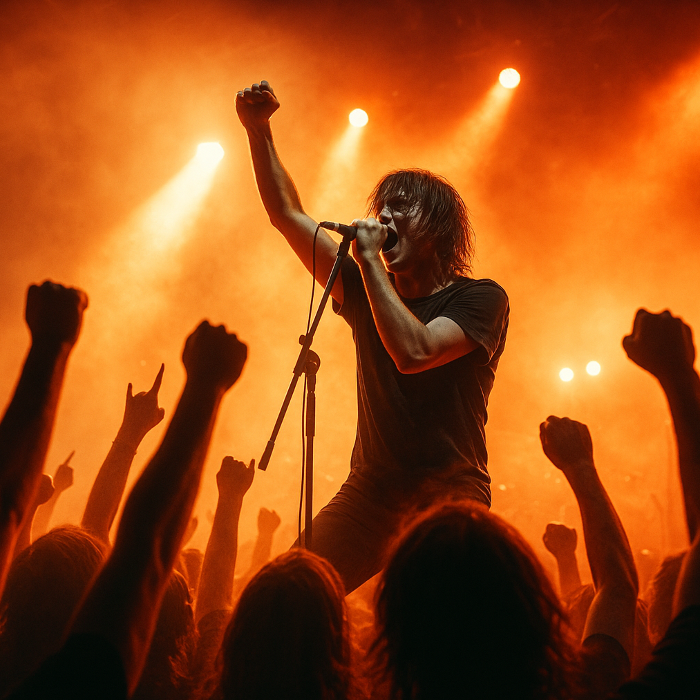Instruments: distorted guitars (MAX), double kick drums, melodic bass, Hammond organ, live crowd shouts