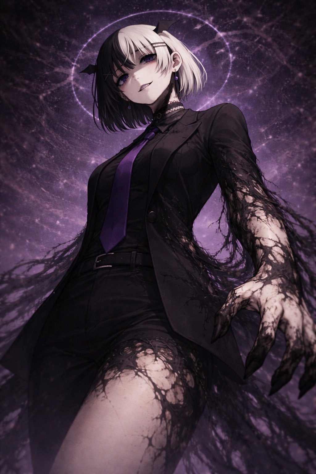Dark Artpop × Storytelling Rap × Electro Swing, Decadent Gothic Cabaret Vibe, Chaotic Vocaloid and UTAU Style Voices, Vintage Swing Rhythm with Modern Bass Design, Rolling Electric Basslines, Dark Baroque Gothic Melodies, Brutal Sustained Gun Bass, Cinematic Noir Atmosphere, Stylish yet Sinister, Experimental Dark Pop Production