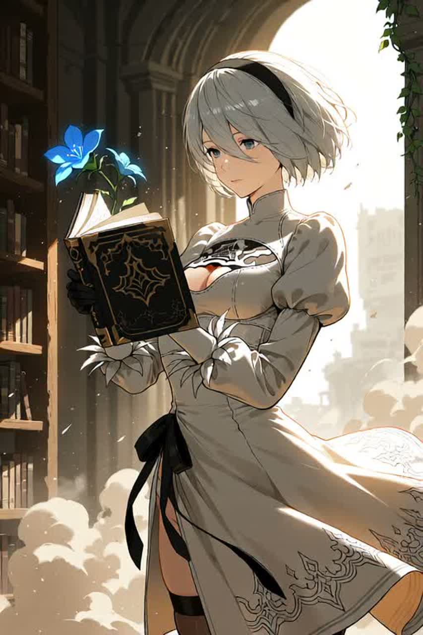4, Atmosphere & Mood: A fusion of an old wooden library and a digital data-void, Lonesome but warm, nostalgic yet futuristic, "A quiet girl reading an unfinished diary of the world, "