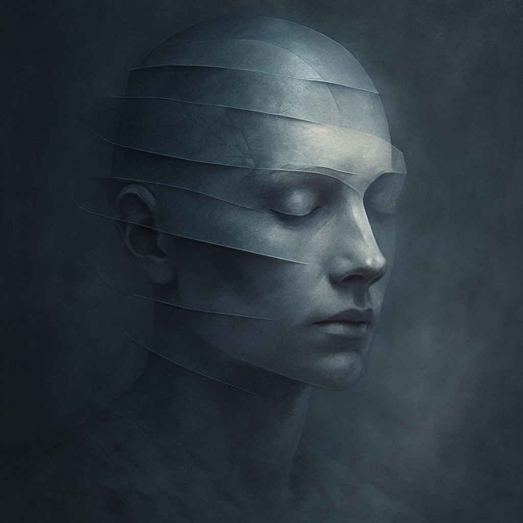 Epic heavy metal piece in E minor, around 80 BPM, combining doom and progressive elements, Opens with an ambient spoken intro over low drones and feedback, then drops into slow, crushing riffs with distorted down-tuned guitars (Drop D or C), Vocals shift between whispered narration, deep growl, and powerful mid-range shouts, Double-kick drums drive breakdowns; bass sustains dark harmonic weight, Include atmospheric reverb and occasional choral pads for a cathedral-like texture, Maintain a dynamic arc: ominous spoken intro → slow doom verses → explosive shouted choruses → half-time breakdown → dramatic climactic outro with sustained chord and screaming vocal fade, Preserve the lyrical intensity and poetic pacing of a metaphysical metal anthem