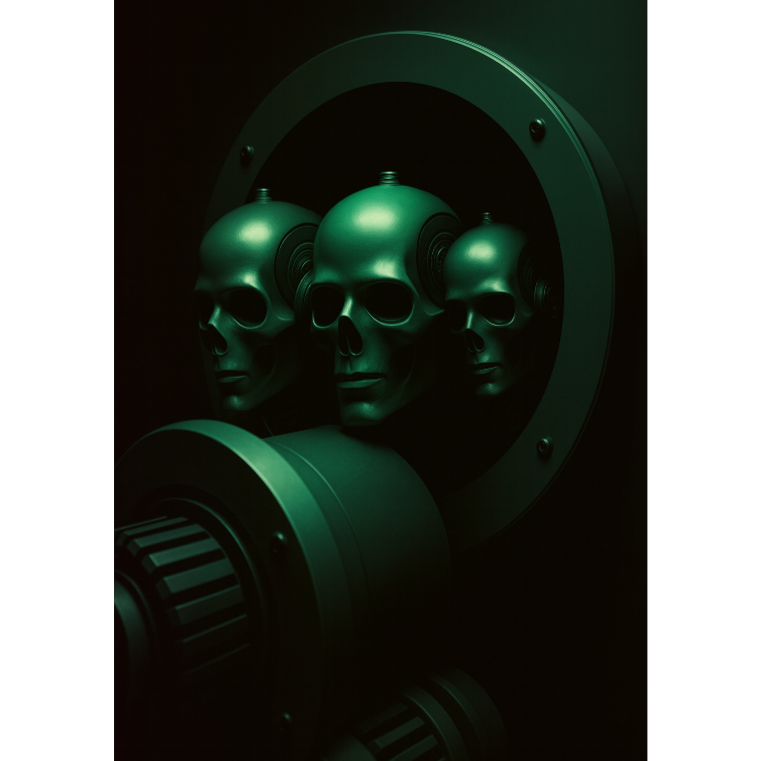 Create a slow, crushing Industrial Doom / Sludge-Doom hybrid with a grim, suffocating atmosphere, Use a crawling tempo around 60 BPM and a dark C minor key, Build the foundation with detuned, down-picked guitars in Drop-C or lower, thick sludge-style distortion, and a massive, overdriven bass that grinds beneath the mix, Drums should be heavy, mechanical, and deliberate—industrial-influenced kick patterns, gated snares, metallic percussion hits, and long reverb tails, Add layers of machine hum, static, distant clanks, and low drones to evoke an oppressive factory environment, Vocals should shift between gritty spoken passages, distorted half-screams, and weary melodic lines soaked in reverb, conveying despair, alienation, and dehumanization, Introduce slow-building crescendos with feedback swells, power-chord surges, and noise textures, Overall tone: bleak, crushing, and mechanized, blending human anguish with industrial decay