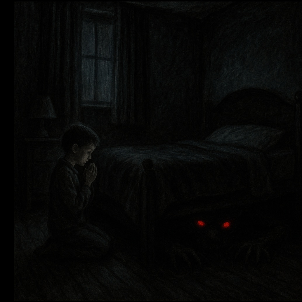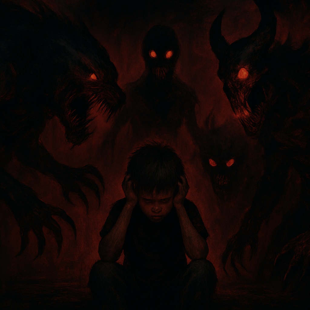 The track opens in B-flat minor with a chilling music box melody, underscored by distant church bells and a sparse, heavy industrial beat, A children's choir introduces the melody, their voices ethereal and haunting, Guitars enter slowly with menacing hard rock riffs, thick alternative metal textures, and industrial rock layers, The verse features brooding male vocals over grinding guitars and a dark rhythm section, while the children's choir echoes in the background, Choruses explode with dense nu metal grooves and post-grunge grit, blending choir and lead vocals, The song crescendos with atmospheric synths and relentless, distorted guitar, maintaining the eerie edge