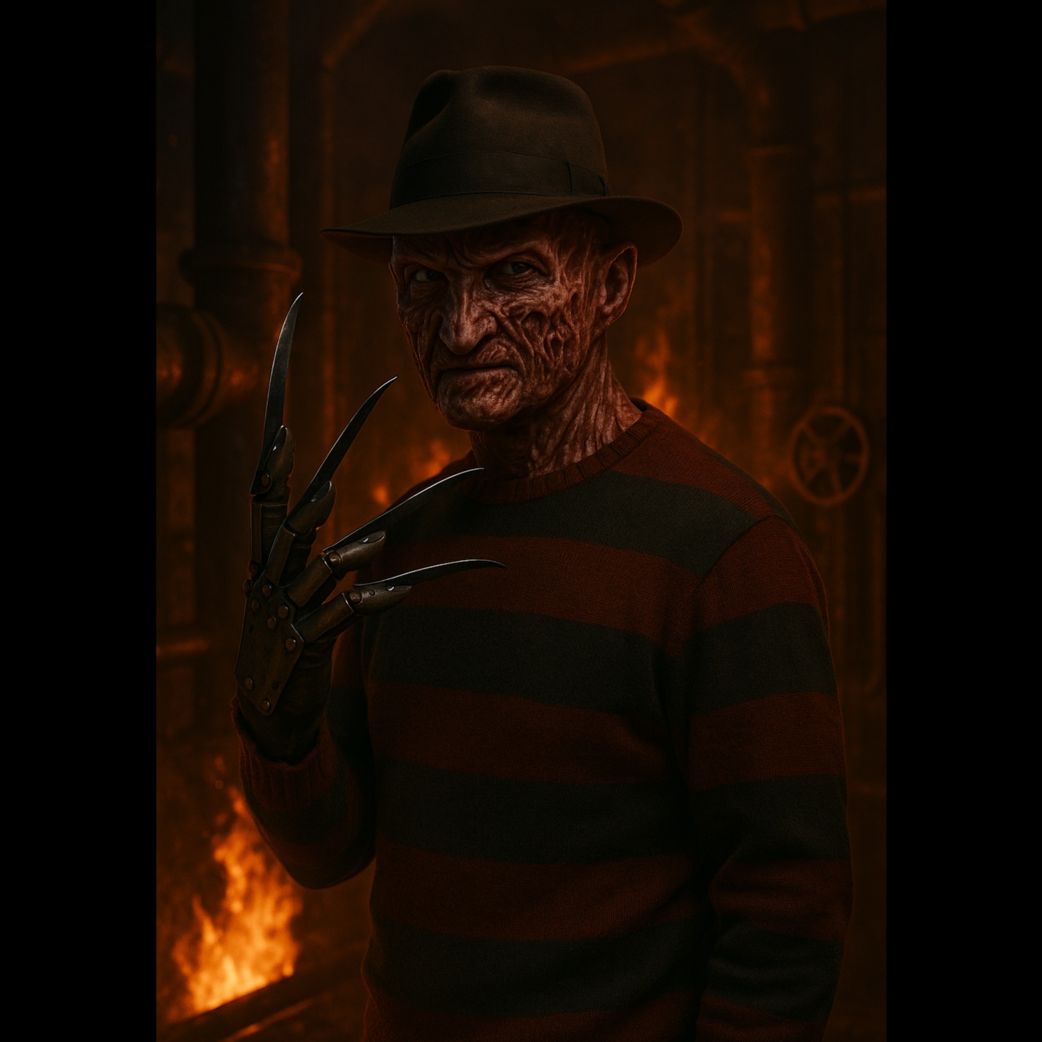 This Industrial Metal track drives forward at 103 BPM in F-sharp minor, layering crushing, heavily distorted guitars with metallic percussion and robotic synths, Horror-themed samples punctuate the mix, Baritone vocals deliver gritty, raspy, and hypnotically repeated lines, locked tightly to the pulsing groove, The harmonic base cycles F♯, A, E, G major triads, giving the music a menacing yet sophisticated edge, Electronic noise, glitches, and effects help maintain tension and texture between powerful, rhythm-focused sections
