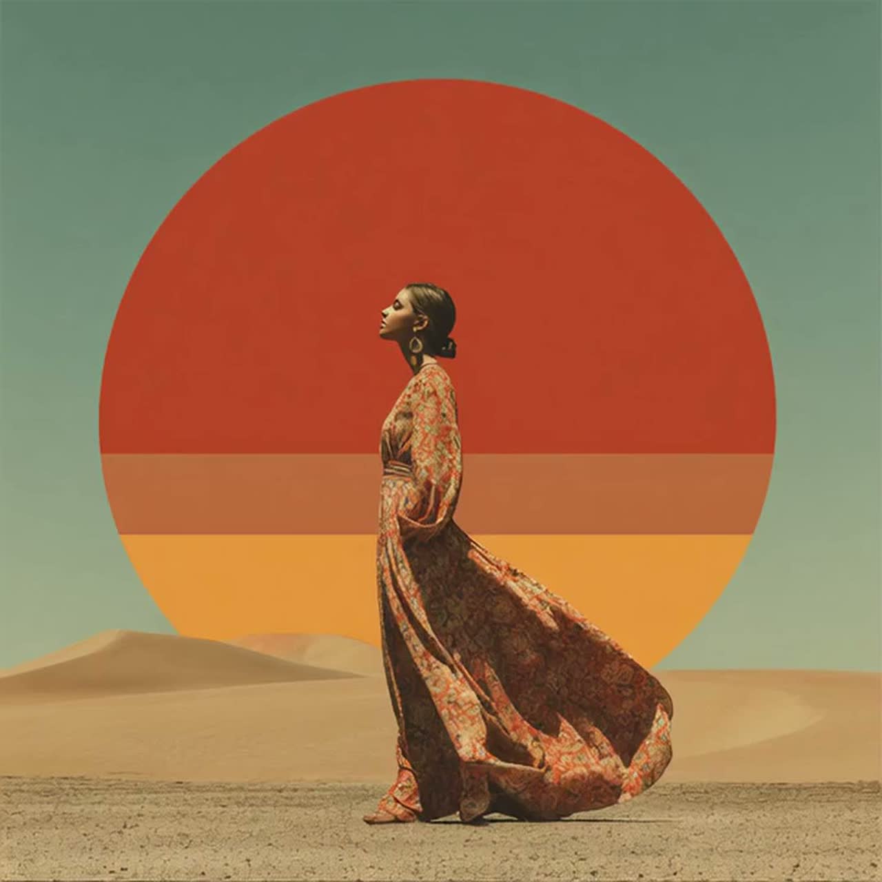 style: Analog trance rooted in retro Goa, blended with Indian glitch textures, Moog Modular bass moves like a tanpura drone, while synth ornamentations echo raga-style bends, MPC1000 drives cyclical tabla-like rhythms, S950 adds 12-bit grit, SP-1200 gives raw percussive hits, Digitakt shapes glitching polyrhythms, and SP-404MKII smears textures into lo-fi haze, Jazz fusion chords drift through brutalist boom bap grooves, uniting East and West, Fragmented 1950s sci-fi voices fuse with Indian percussive samples, processed in tape echo and reel saturation, dissolving into a hypnotic, surreal, spiritual atmosphere