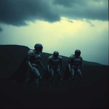 A relentless sci-fi metal anthem with crushing riffs, double-kick blast beats, and guttural harsh vocals blended with soaring clean choruses, Dark, cinematic atmosphere with mechanical chugging guitars, orchestral stabs, and choir-like backing shouts that evoke a galactic war, The sound is brutal yet triumphant, conjuring images of soldiers dropping into alien battlefields, sacrificing everything for survival and glory