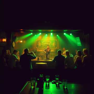 folk, Rowdy Irish folk banger with thumping floor toms and warm bass, bodhrán-style drive, Fiddle and violin trading raucous riffs, acoustic guitar chopping tight on the upbeats, Male vocals, pub-chant chorus with gang shouts, tempo pushes slightly in the last hook with stomps and claps swelling to a shout-along ending, violin
