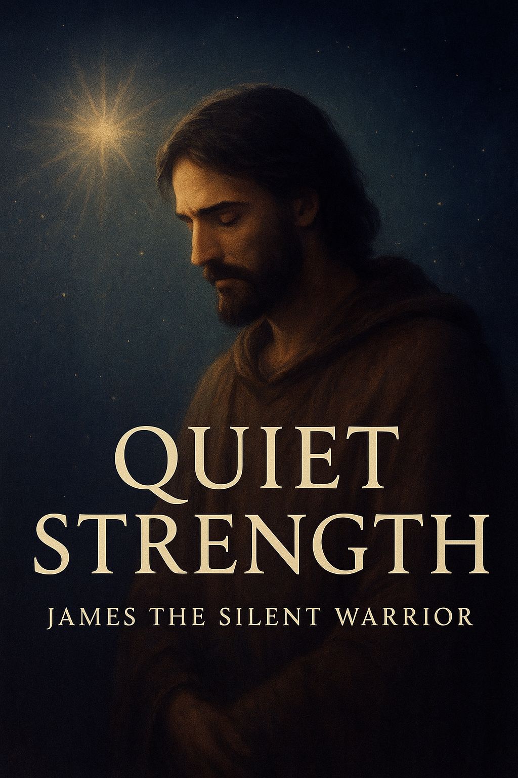 A heavenly beat for James son of Alphaeus — soft pads, harp, light strings, and a gentle healing 528 Hz frequency, Add quiet Jesus adlibs (“I am with you, ” “Do not fear”), Midway, drop into a darker moment with a low 40–60 Hz rumble and faint temptation whispers (“doubt…”, “turn away…”), Then rise back into bright choirs, shimmering bells, and uplifting heavenly ambience, Deep, emotional, peaceful, victorious