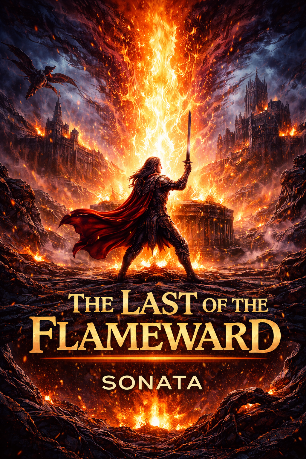 Fast-paced melodic power metal with epic and symphonic elements, Uptempo galloping drums, driving double-kick rhythms and energetic bass, Bright, melodic electric guitars with heroic leads and harmonized solos, Large symphonic layers with orchestral strings and brass supporting the metal core, Epic choir elements throughout the song, especially in intro, chorus and outro, Choirs used for call-and-response and to reinforce the heroic atmosphere, Male lead vocal, powerful and clean, soaring high notes and emotional delivery, Massive, anthem-like choruses with stacked backing vocals and rich harmonies, Final chorus bigger and higher, with full choir and key-change feel, Themes of sacrifice, duty, legacy and standing against darkness, Triumphant, dramatic and heroic tone with a sense of final stand and hope, Modern production with clear separation of instruments, cinematic depth and scale, Designed to feel like a battlefield anthem and a legendary final chapter