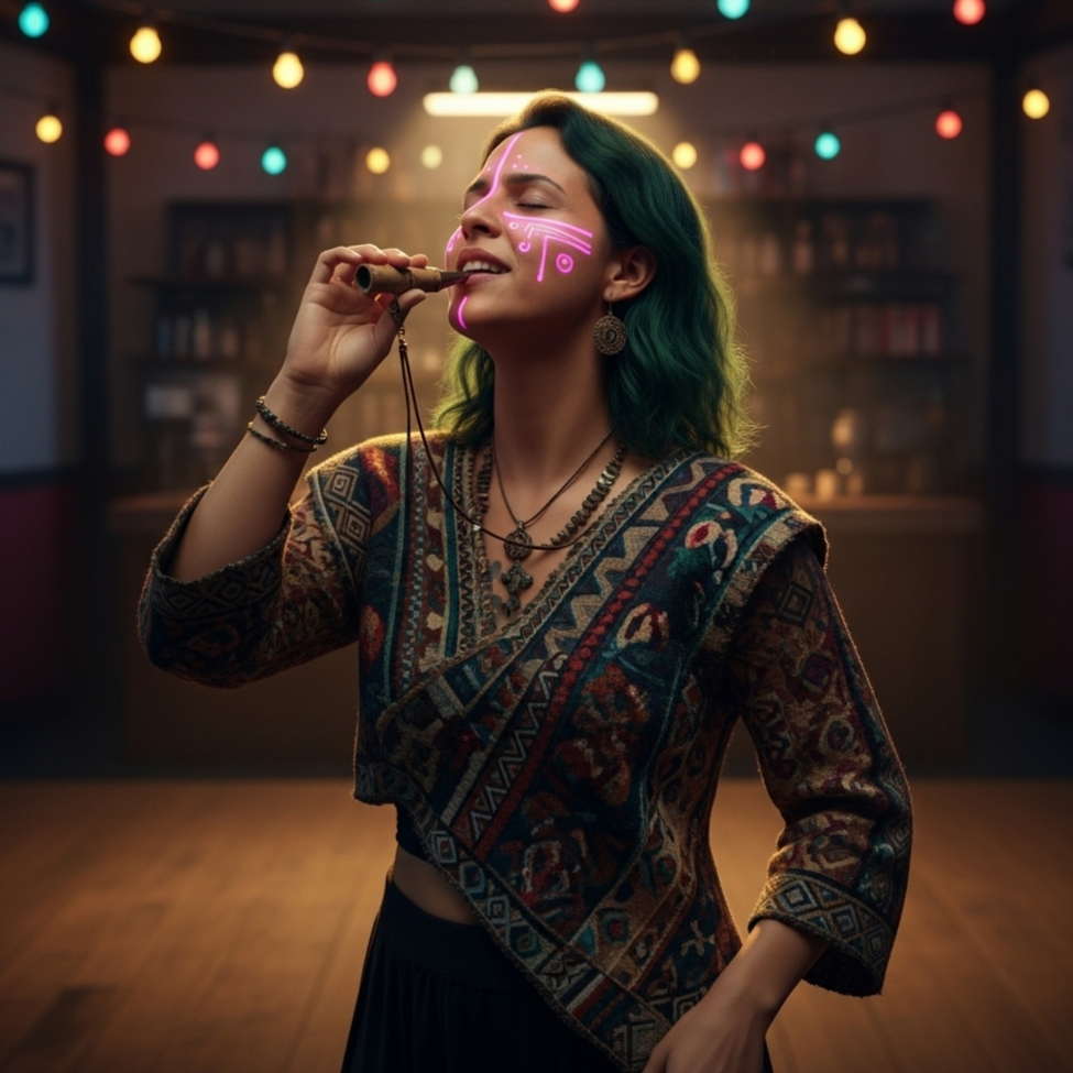 Style: FLAMENCO-BLUES-TANGO-FUNK DUET, Female Vox (sultry, soulful, ZAZ/Christina Aguilera power with Afro-Uruguayan intimacy); Male Vox (deep, resonant, Josh Turner-esque gravitas/heartbreak), RETRO-TECH TRIBAL-ELECTRONIC DRUMS (Pulp Fiction dance scene energy, Candombe, glitch), SOULFUL WEEPING HARMONICA, DEEP GROOVY BASS, HAUNTING THEREMIN, Spanish GUITAR, BANDONEÓN, Bittersweet, extremely danceable, heartbreakingly sensual, global viral hit, ~110 BPM][Style: Junkyard Rave-abilly, A chaotic fusion of Funk basslines, distorted Rockabilly guitar riffs, frantic Rave synth stabs, and a core of organic, a-cappella Murga beatboxing, The percussion is made of clattering office supplies and body sounds, The whole track is raw, danceable, and dripping with defiant joy, ]