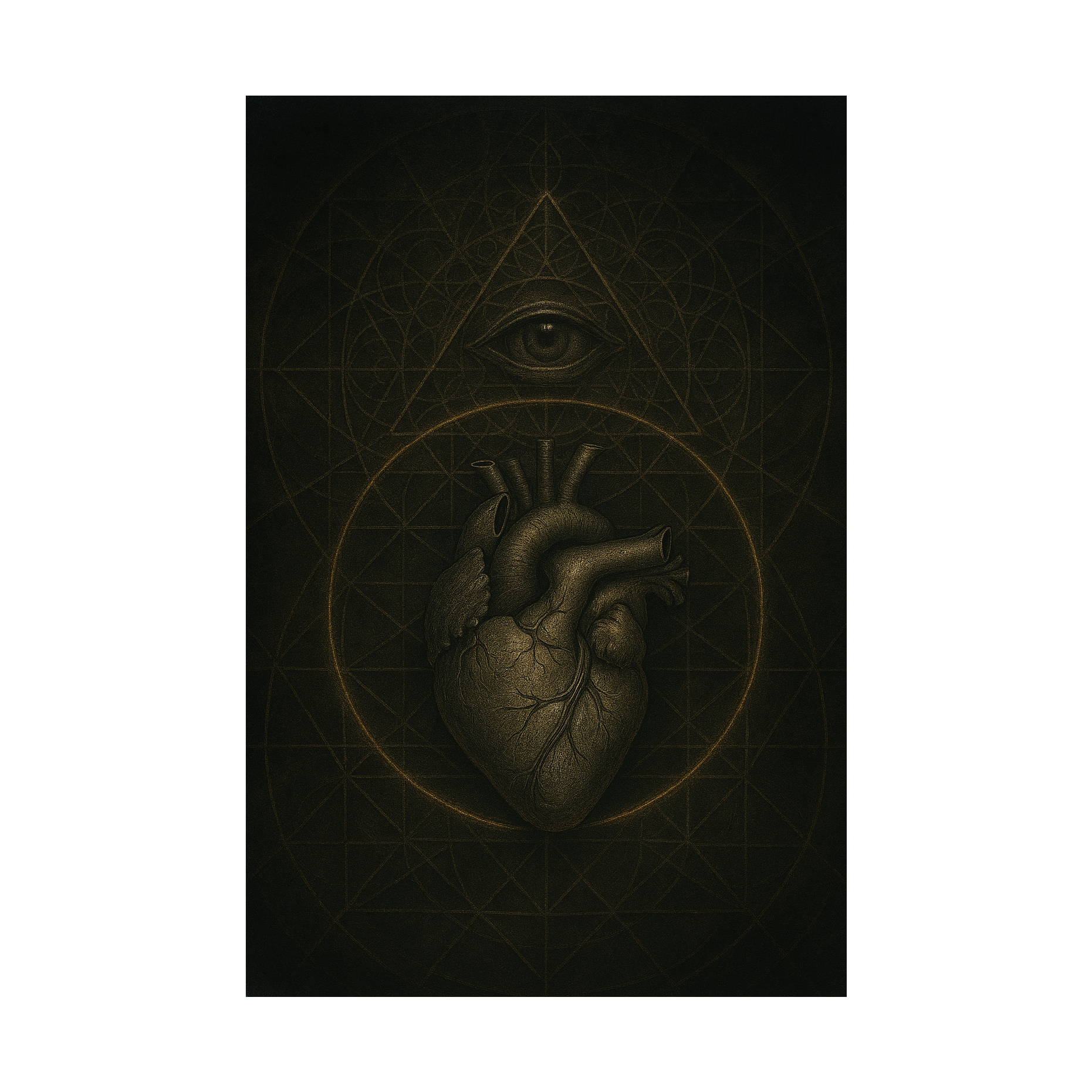 A dark, progressive Rock composition that merges post-rock, post-classical, and post-metal atmospheres with subtle R&B melodic sensibility, Built on tribal percussion—layered hand drums, tom-heavy polyrhythms, and hypnotic cyclical grooves—over deep, resonant bass lines that anchor evolving time signatures, Guitars move between spacious, delay-soaked textures and restrained, crushing riffs, emphasizing tension over speed, The arrangement breathes with meditative yet intense dynamic arcs, slowly unfolding and collapsing, Vocals are low, resonant male tones with clear diction and measured, trance-like phrasing; verses lean into spoken-word cadence, while choruses bloom with soulful, melodic lift and layered harmonies, Occasional subtle growl appears only at emotional peaks, Lyrics are introspective, mystical, and psychological, Ritualistic, Haunting, immersive, and hypnotic, while remaining heavy, cerebral, and emotionally charged