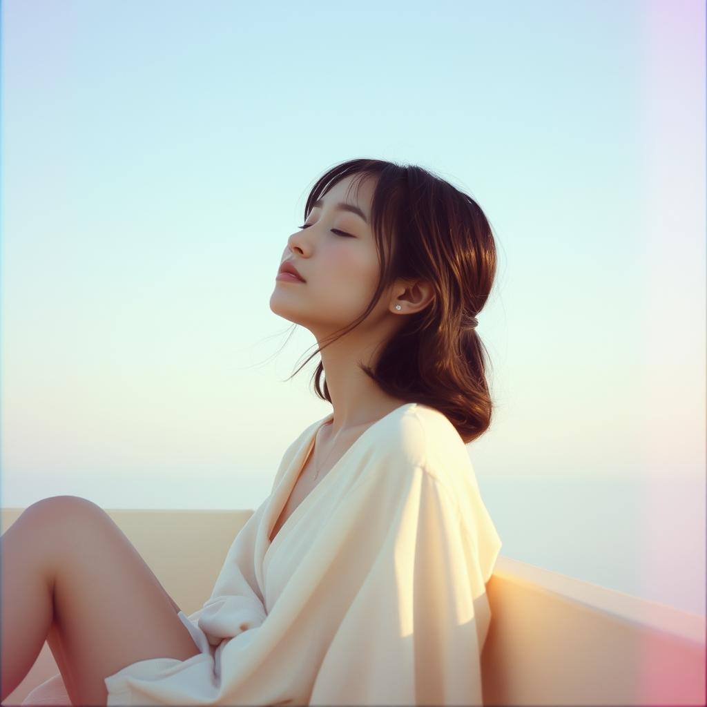 A slow tempo, melancholic new age piece in a minor key, featuring a female vocalist, The instrumentation includes a sustained pad synth, a plucked string instrument, and a piano, The vocal melody is simple and sustained, with a clear, ethereal quality, The song structure is verse-like, with a consistent chord progression and a focus on atmospheric textures, The production emphasizes a spacious, reverbed soundscape, creating a sense of introspection and calm, The plucked string instrument provides a gentle rhythmic pulse, while the piano adds harmonic depth with arpeggiated figures, The overall mood is serene and reflective