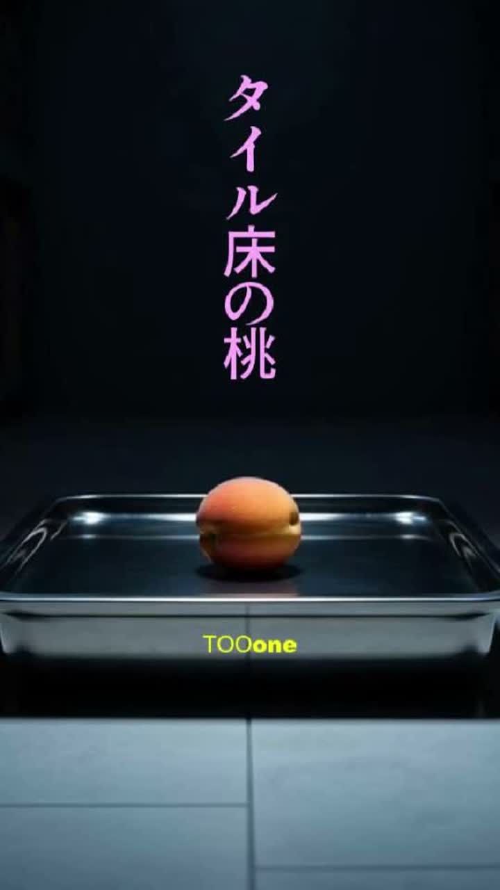 タイル床の桃