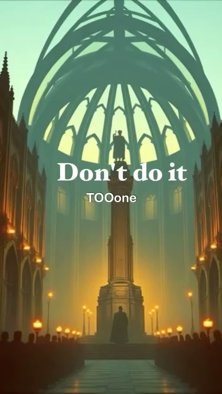 Epic classical cantata style inspired by early 20th-century dramatic choral works, Full symphonic orchestra with massive mixed choir (SATB), Heavy low strings (cellos, basses) in ostinato rhythm, Aggressive timpani strikes on downbeats, Brass stabs accenting rhythmic phrases, Latin-chant atmosphere, medieval modal harmony (Dorian / Phrygian colors), Slow build intro with whispered choir, then explosive fortissimo chorus, Staccato rhythmic chanting on “Do Not” phrases, Sudden dynamic drops followed by overwhelming tutti climaxes, Dark, ritualistic, fate-driven energy, Tempo around 110–120 BPM, strong 4/4 with martial pulse, Large cathedral reverb