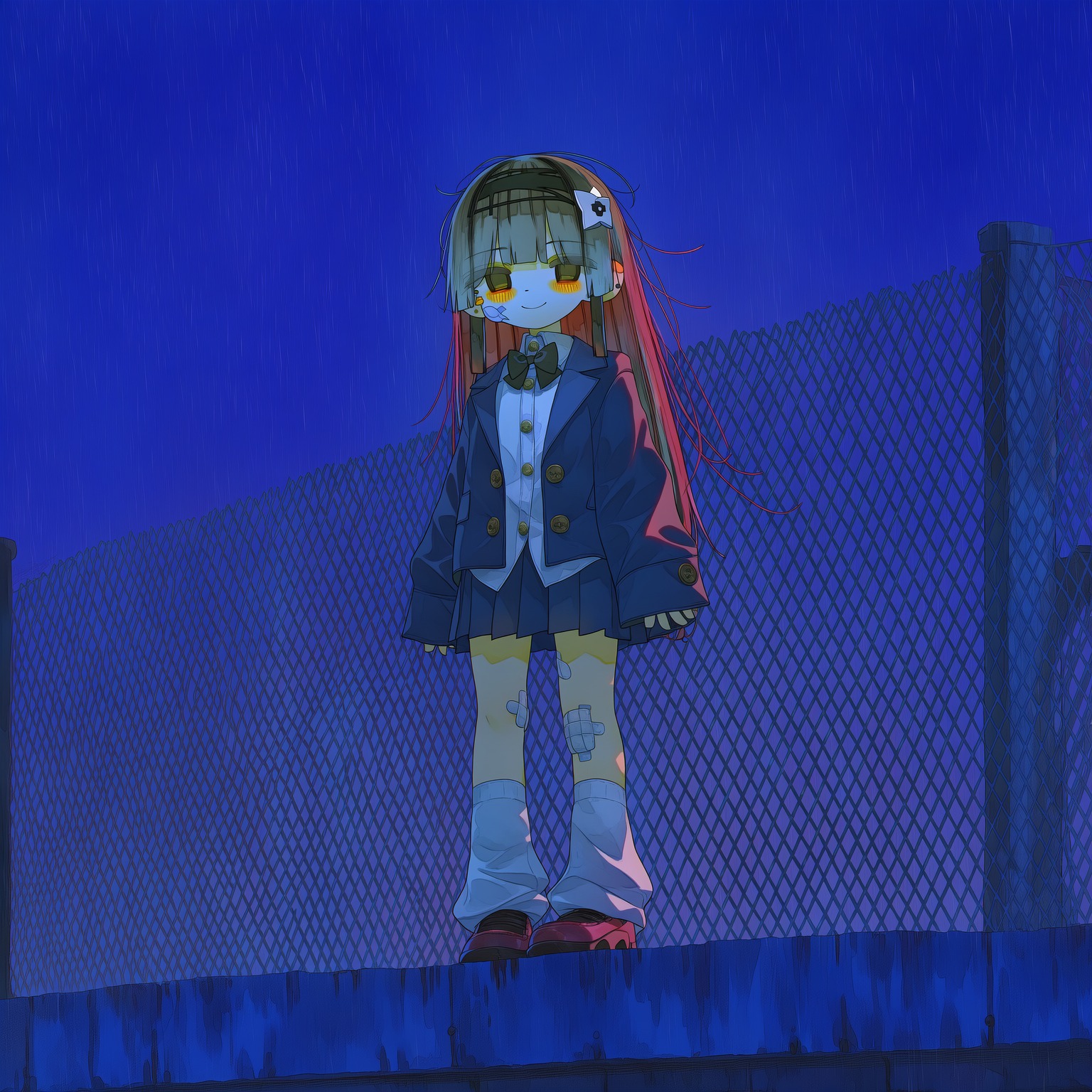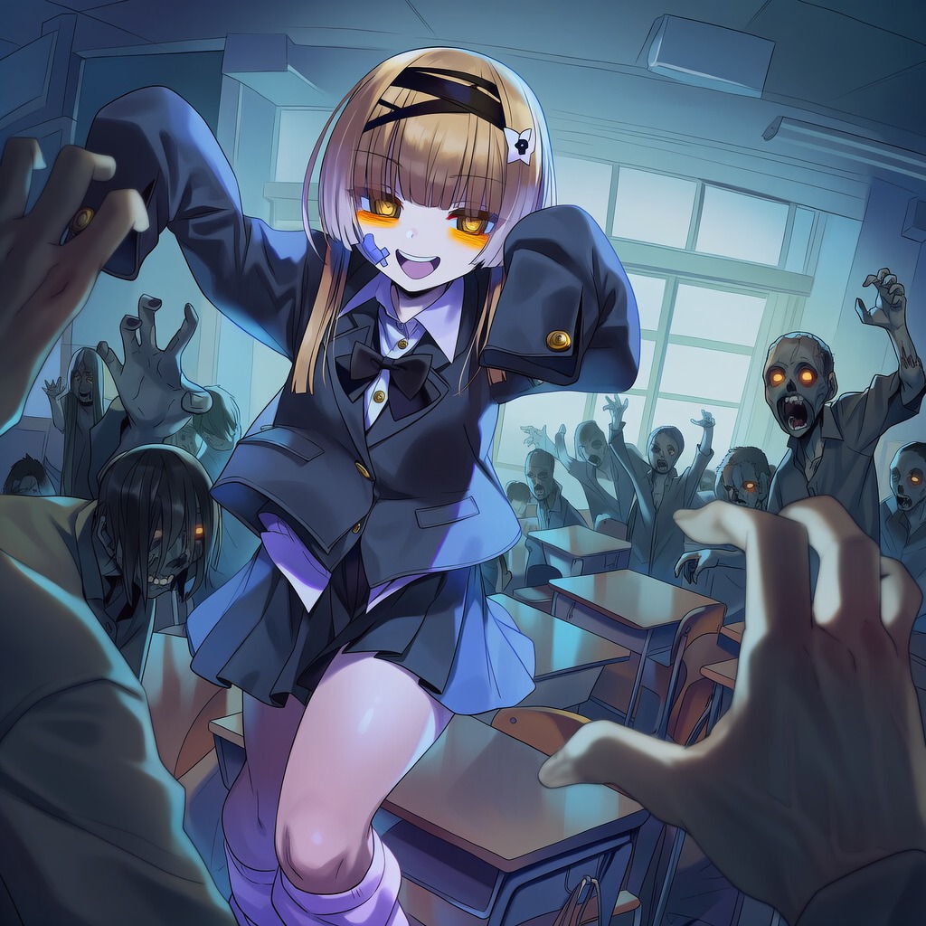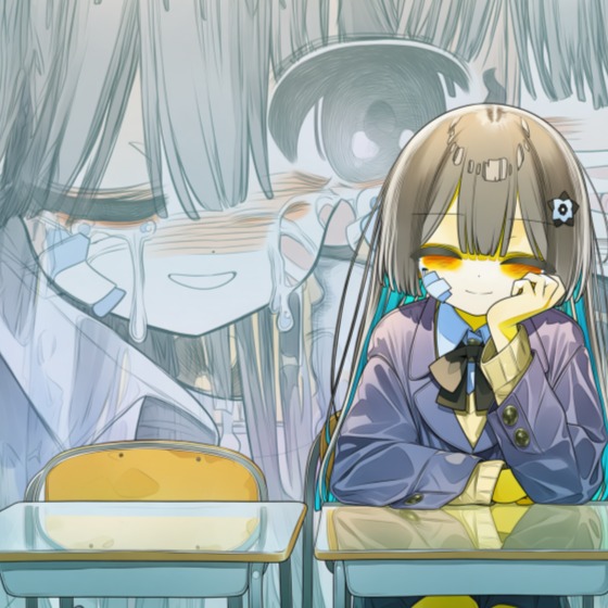 Genre: Glitchy Odd-meter J-Pop, Avant-Garde Industrial Ballad, Polyrhythmic Vocaloid-core, Instrumentation: Detuned emotive piano playing off-beat syncopated chords, metallic industrial percussion with randomized erratic hits, deep oscillating "heartbeat" synth bass, glitchy school-life foley (sudden door slams, broken school bells), Strictly no guitars, Constant shifting between 7/8, 5/4, and 11/8 time signatures, Vocal Style: Uncanny human vocals with fragmented delivery, Vocals are intentionally placed off-beat (lagging behind or rushing ahead of the snare), Overlapping layers of whispers and frantic singing that conflict with each other, High-pitched breathy tones that suddenly drop into a robotic monotone, Mood: Feverish, dizzying, social-climbing paranoia, emotionally broken but aggressive, 185 BPM but feels unstable