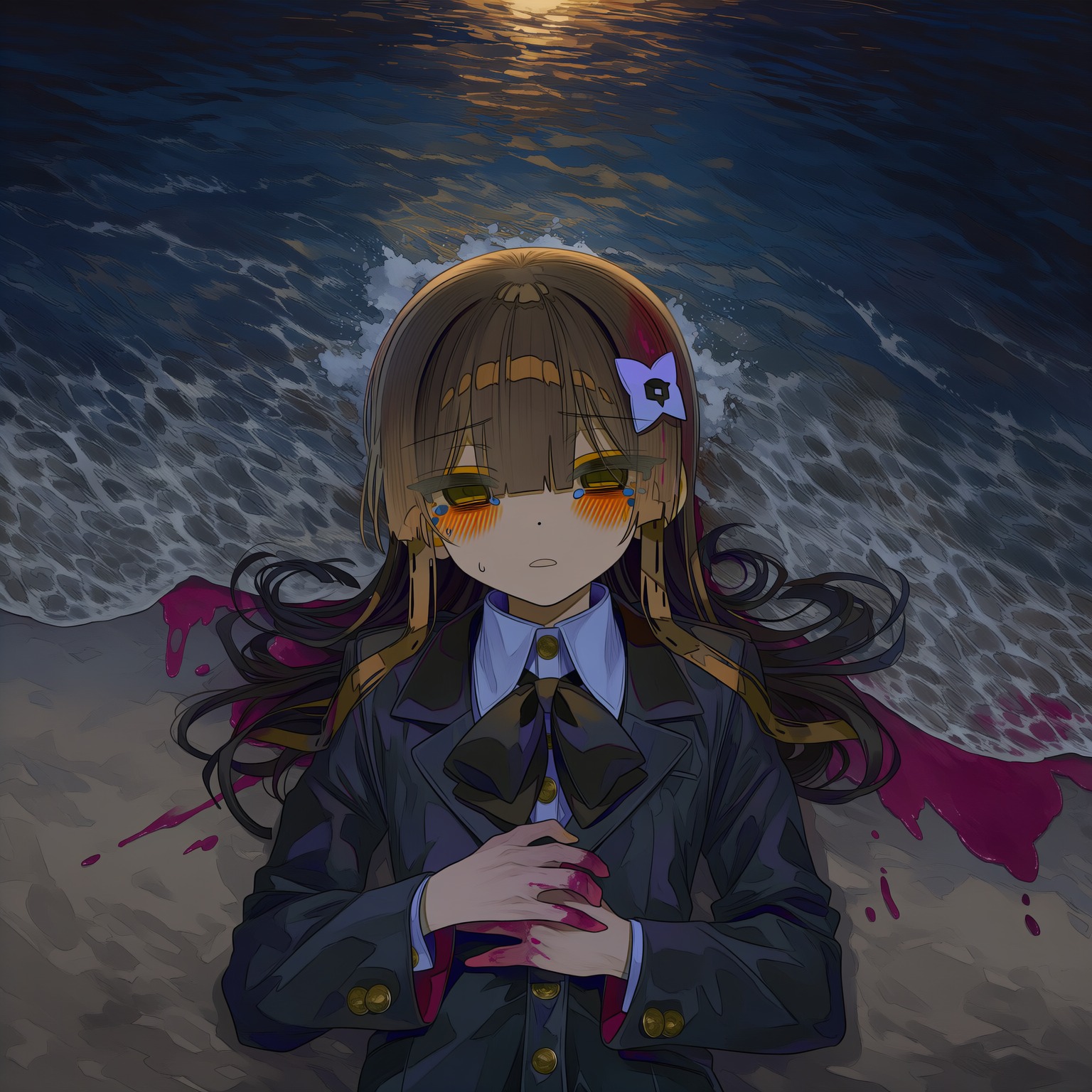 Weird, Style: 165BPM, Dark and Manic J-Pop, Post-Hardcore influence, Math Rock tension, Highly emotional and unstable, Blending "Cute" and "Grotesque, " Aggressive and percussive, Sudden dynamic shifts, High-pressure mix, Studio Quality, Rhythmical, 奇妙な音, 掃除する, 汚れた, contemporary