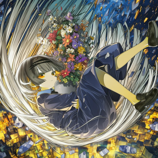 Style: 150BPM, Fast-paced Experimental J-Pop, Dark Cinematic, Avant-garde, Intricate and chaotic Xylophone solo, Marimba, Descending chromaticism, Semitone dissonance, Heavy sub-bass, Glitchy industrial percussion, No chiptune, No 8-bit sounds, Sad but energetic, Emo, VHS lo-fi texture, Studio quality, 高揚感のある弦楽器, ミステリー