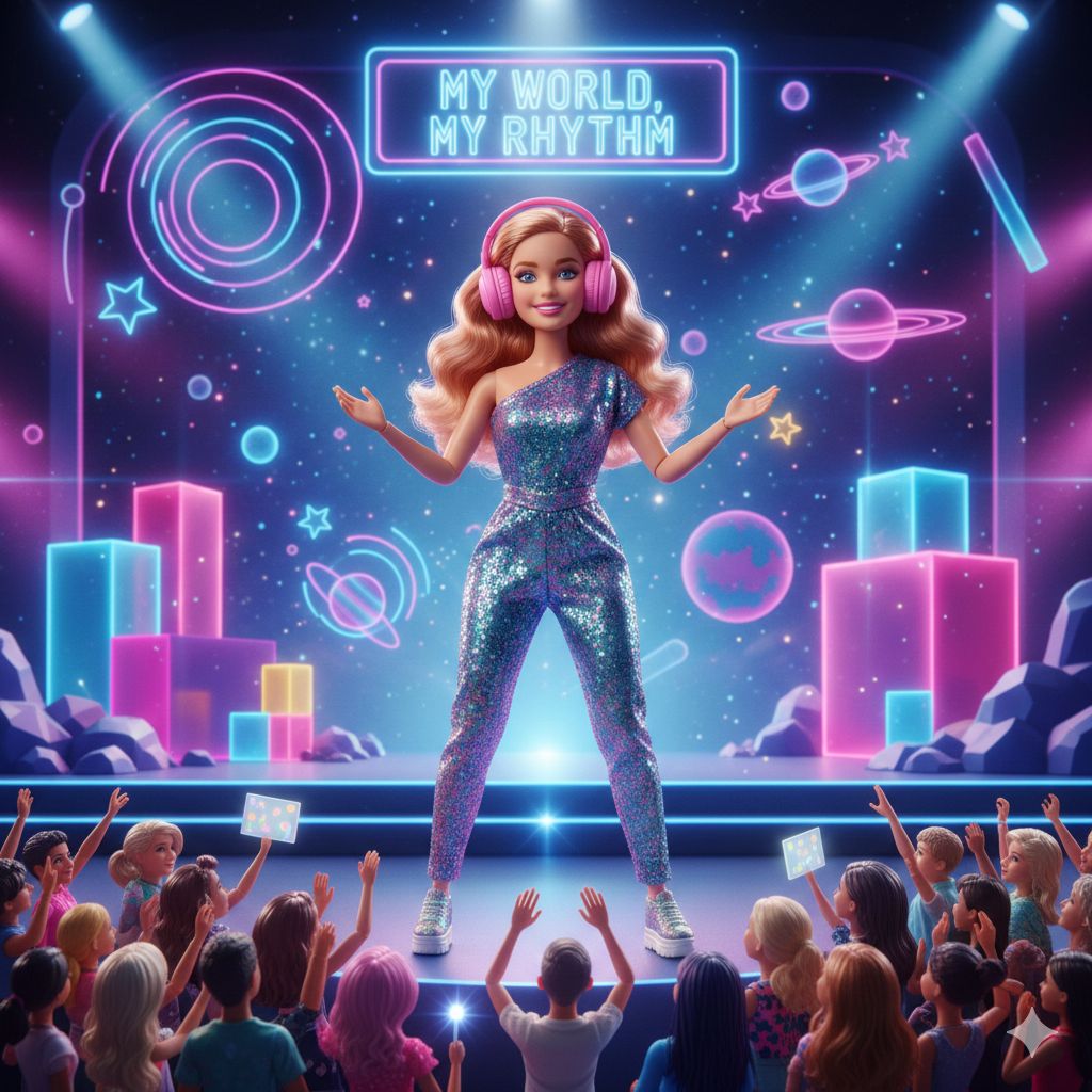 similar to a classic Barbie movie soundtrack but with a steady