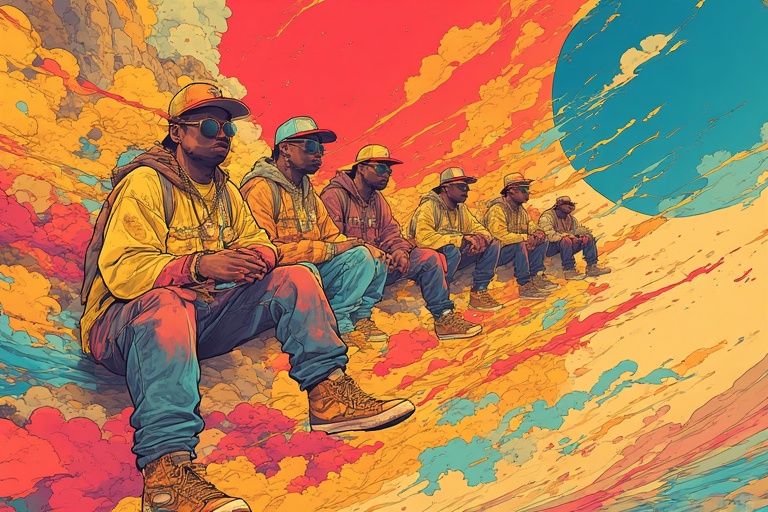 TISM, psychedelic 90s rap, funky bass, african american group, Surreal, Psychedelic, Unpredictable