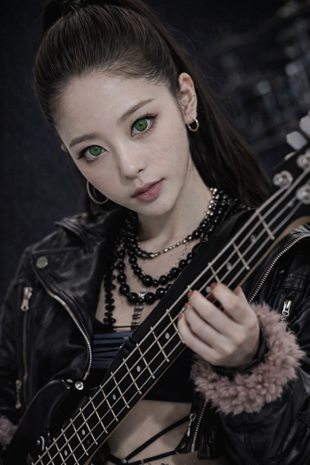 Funk-based K-pop rock track, mid-fast tempo (~112 BPM), key E minor, Female vocalist with rich emotional falsetto and warm chest voice, high-pitch centered, in the style of Jenapop, recorded with extreme close-mic intimacy, All vocals by Jenapop only, Vocal-first, rhythm-clean arrangement: intro strictly instrumental with no humming, verses kept sparse to avoid rhythmic collision, choruses expand harmonically with layered vocals and soaring falsetto while instruments lock into a unified groove, Instrumentation: clean to lightly overdriven electric guitar, selective slap bass, tight drum kit with controlled fills only at transitions, No synths, no pads, Mix & Sound: fully mastered, bright and punchy, vocal clearly forward, dry and close live-band feel