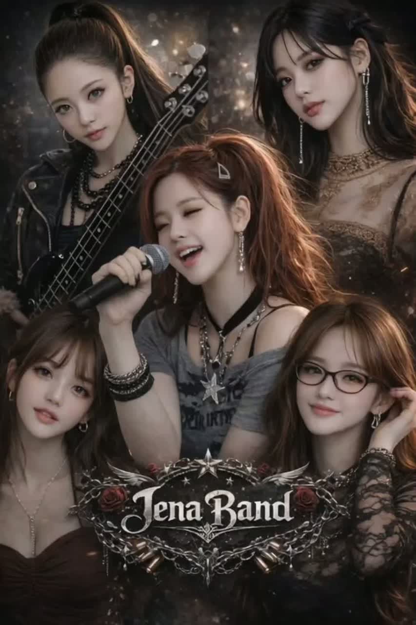 Upbeat K-pop band pop-rock groove, medium-fast tempo (~108 BPM), key G major, Female vocalist with rich emotional falsetto and warm chest voice, high-pitch centered, in the style of Jenapop, captured with extreme close-mic intimacy, Performance radiates overflowing joy: audible smiles, soft giggles, breathy “hm~ / hee~” ad-libs between lines, playful laughter tucked into phrase endings without breaking melody, Verses use whispery chest tone with spoken storytelling phrasing; natural chest-to-falsetto transitions throughout, Choruses explode with bright layered harmonies, English repetitive hook, soaring falsetto highs, controlled belting, and smiling articulation, Instrumentation spotlights a bouncy slap bass core, tight live drums with crisp fills, clean electric guitar rhythmic stabs and short lead answers, and piano riffs that build tension into lifts, Interlude is fully instrumental, highlighting band interaction only, Bridge is the emotional peak with high-note spotlight and joyfu