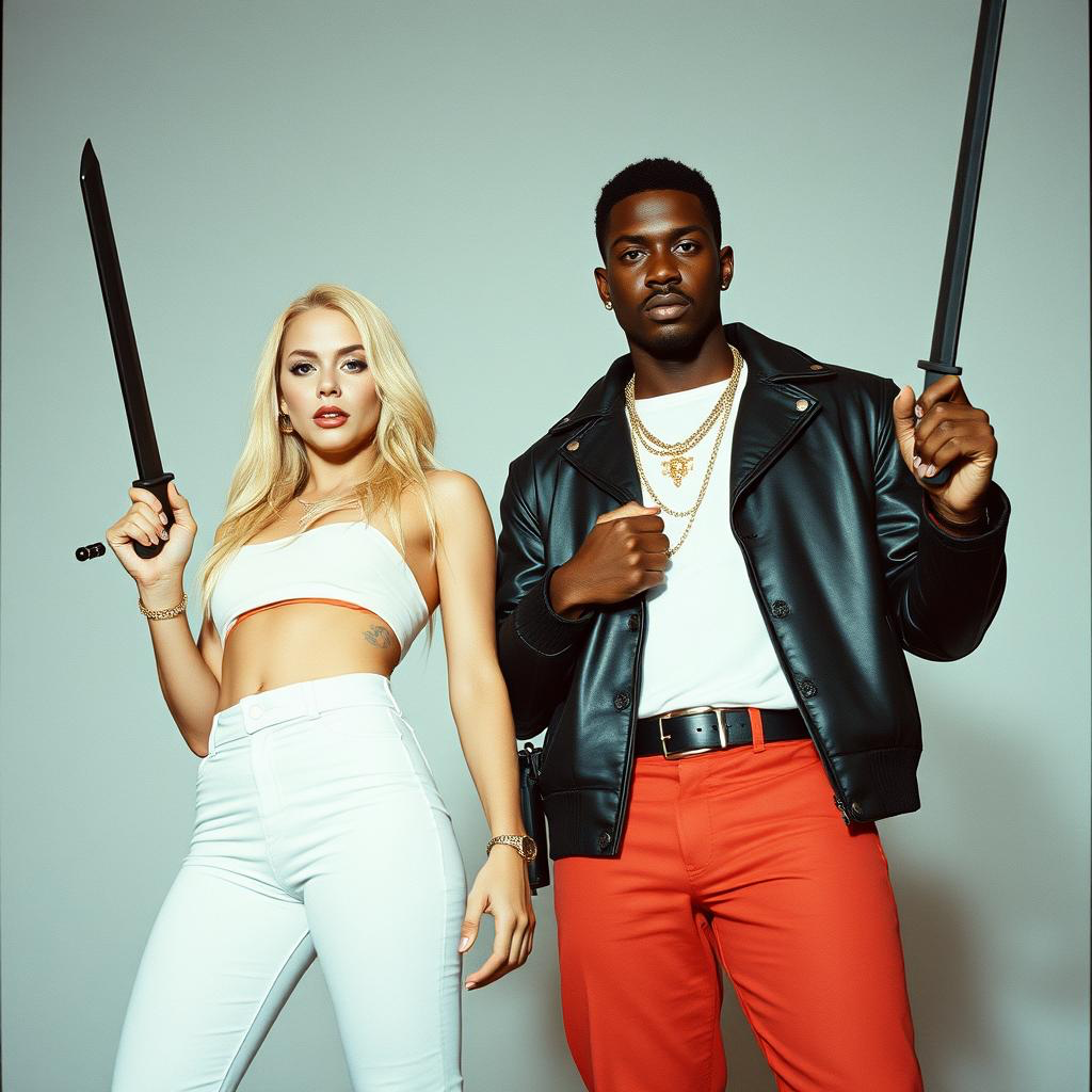 This is a hip-hop track with a moderate tempo and a minor key, The instrumentation includes a synth bass, a drum machine providing a boom-bap rhythm, and a synth melody, The male lead vocalist uses a rap delivery with a deep, resonant tone, The female lead vocalist uses a rap delivery with a clear, slightly higher-pitched tone, The song structure alternates between male and female vocal sections, with some call-and-response elements, The production features a clean mix with a prominent bassline and clear vocal presence, There are occasional vocal ad-libs and spoken word elements throughout the track, The synth melody is simple and repetitive, providing a consistent harmonic backdrop
