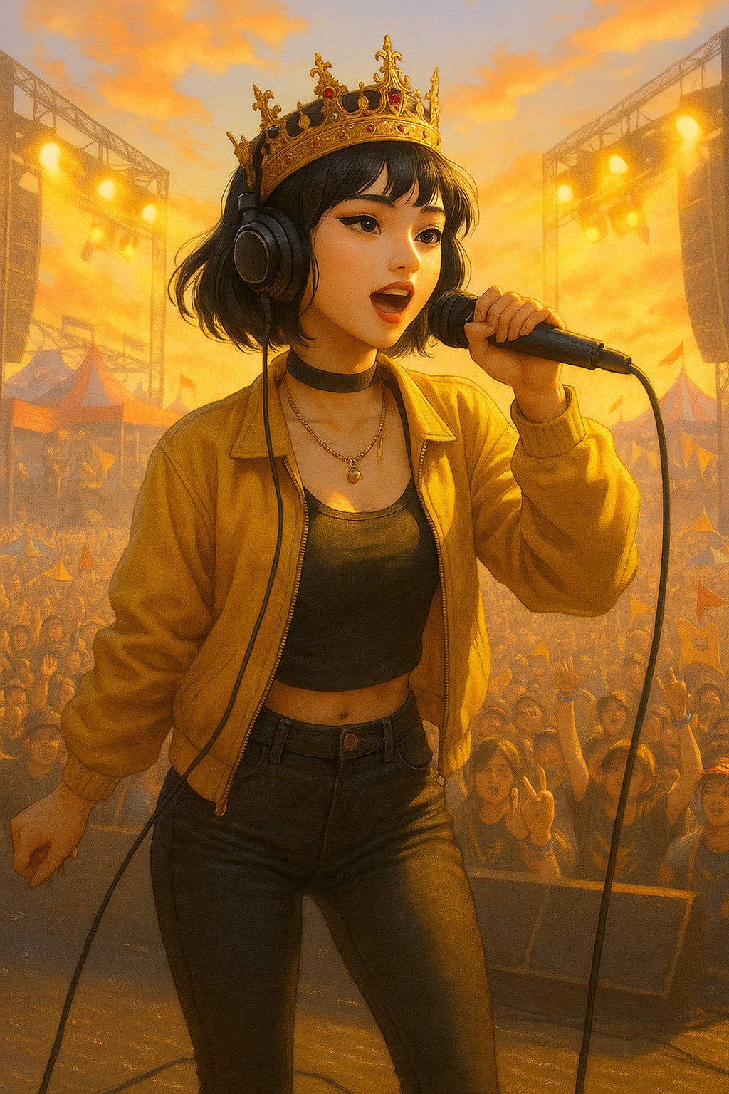 Female rapper, A gritty 90s hip-hop track surges with a raw, soulful sample loop, layered atop a punchy boom bap drum groove and deep bass, The verses ride introspective, poetic flows with sharp rhyme schemes and a deep, impassioned vocal tone, Atmosphere is urban and intense, driven by textured vinyl crackle, subtle turntable scratches, and emotive horns or organ stabs, delivering streetwise, revolutionary energy and profound lyrical depth