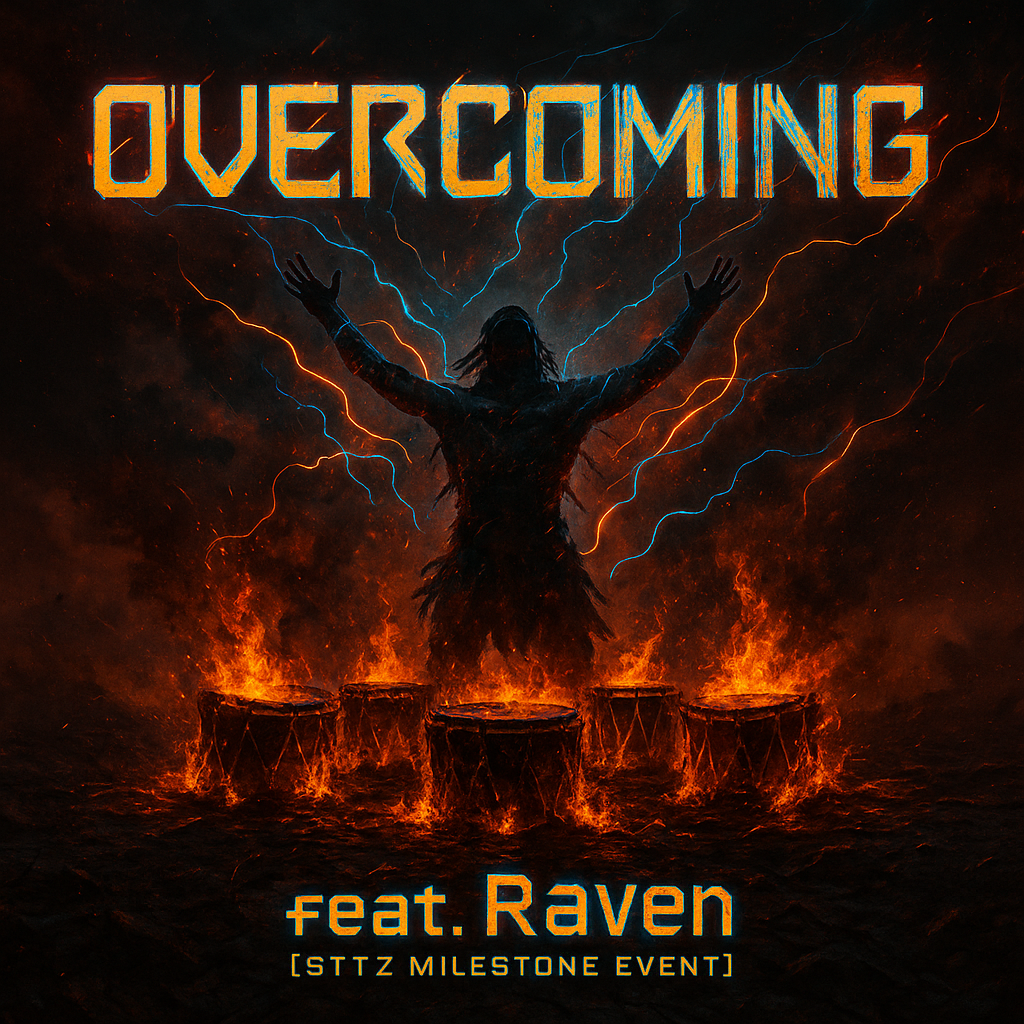 A ritualistic tribal metal song fused with electronic elements, combining deep drop-tuned groove guitars and heavy tribal percussion with atmospheric synth layers, distorted industrial FX, and melodic lead-synth accents, The vocals are raw and primal, shifting between half-spoken chants, shouted calls, and aggressive responses, The mantra-like bridge builds with escalating drums and psychedelic pads, while the final chorus adds soaring synth melodies over crushing riffs, The outro blends fading tribal drums with a pulsing electronic arpeggio, creating a haunting ritual-digital fusion, Song Description: [TribalMetal][ElectroHybrid][GrooveMetal], Drop-tuned groove riffs, Polyrhythmic tribal percussion, Fat percussive bass, Raw shouted vocals, Call & response chants, Synth drone layers, Industrial FX, Lead synth melodies, Mantra-like bridge, Ritual energy, Escalating drums, Arpeggio outro