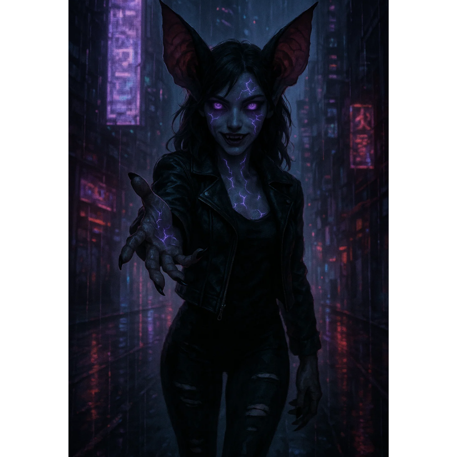 Atmospheric synth pads and echoing digital textures create a cinematic cyberpunk overture, Gliding, emotive melodies lead into pulsing acid and 808 basslines, paired with glitchy, crisp percussion, Hard, sped-up drops hit with reverse bass in immersive 3D-audio as metallic arps spiral below strong, rough female vocals—showcasing striking range, Layered catchy hooks ride a dense, polished sonic mix, fusing industrial cyberpunk grit, dark synthwave, experimental flourishes, and wide surround sound depth for clean, modern impact