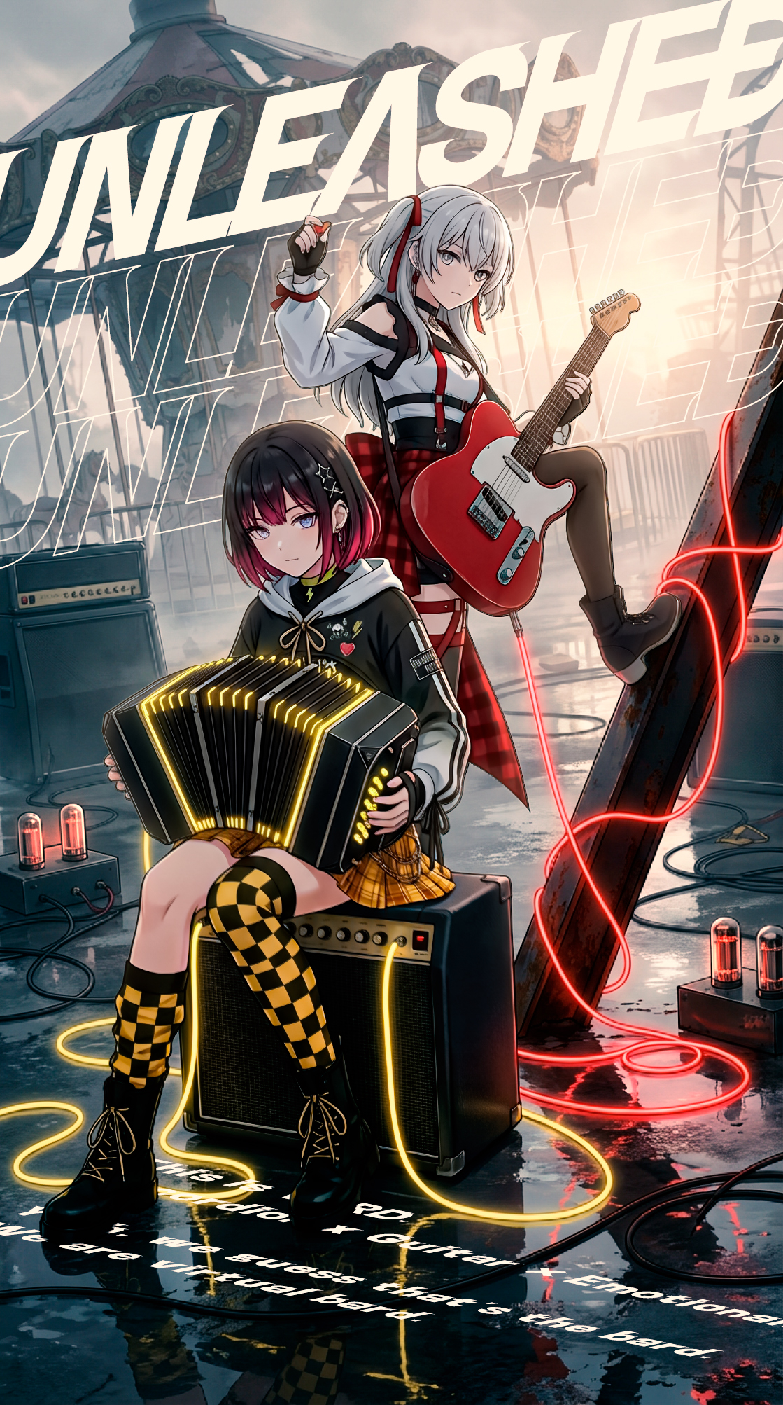 Mysterious piano counter melody with deep reverb, Mysterious piano arpeggios with deep reverb, Music Box Melody, Accordion counter melody, pop-punk, high-energy, male vocals