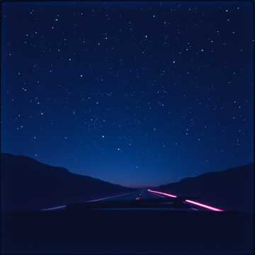 synthwave 80s, indie touch, analog synths, dreamy pads, soft bass, retro drum machine, young soft female vocal, whispered tone, reverb, slow tempo, cinematic, ethereal chorus, ‑Stars on the windshield
