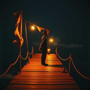 Melancholic punk-folk ballad set in a quiet harbor at night, Dark fingerpicked acoustic guitar with deep somber arpeggios, slightly more driving rhythm, Expressive accordion adding a raw maritime atmosphere, Subtle violin highlighting emotional moments, soft tense harmonica, Slow-to-moderate but energetic rhythm with restrained drums, Warm deep male voice, slightly raspy, marked breathing, fragile whispers shifting into restrained power, Dramatic pauses, intimate poetic mood, contained but poignant energy