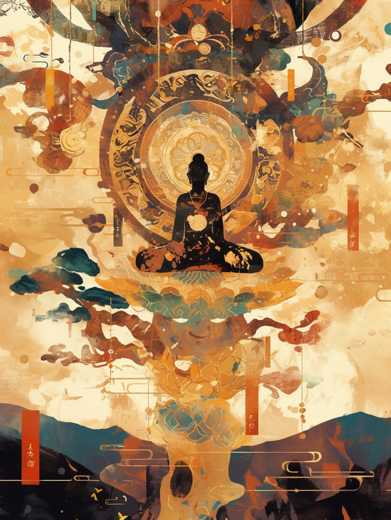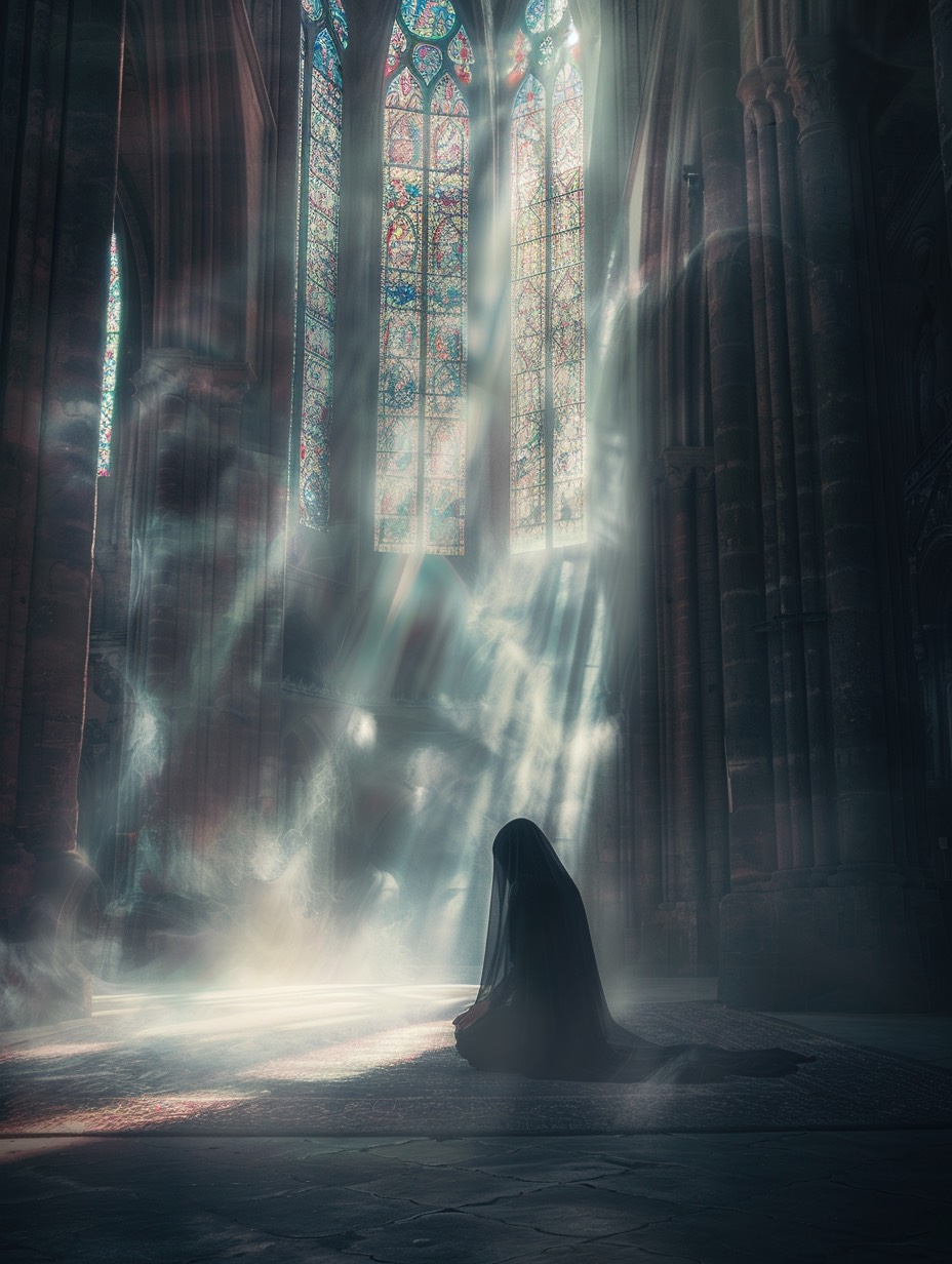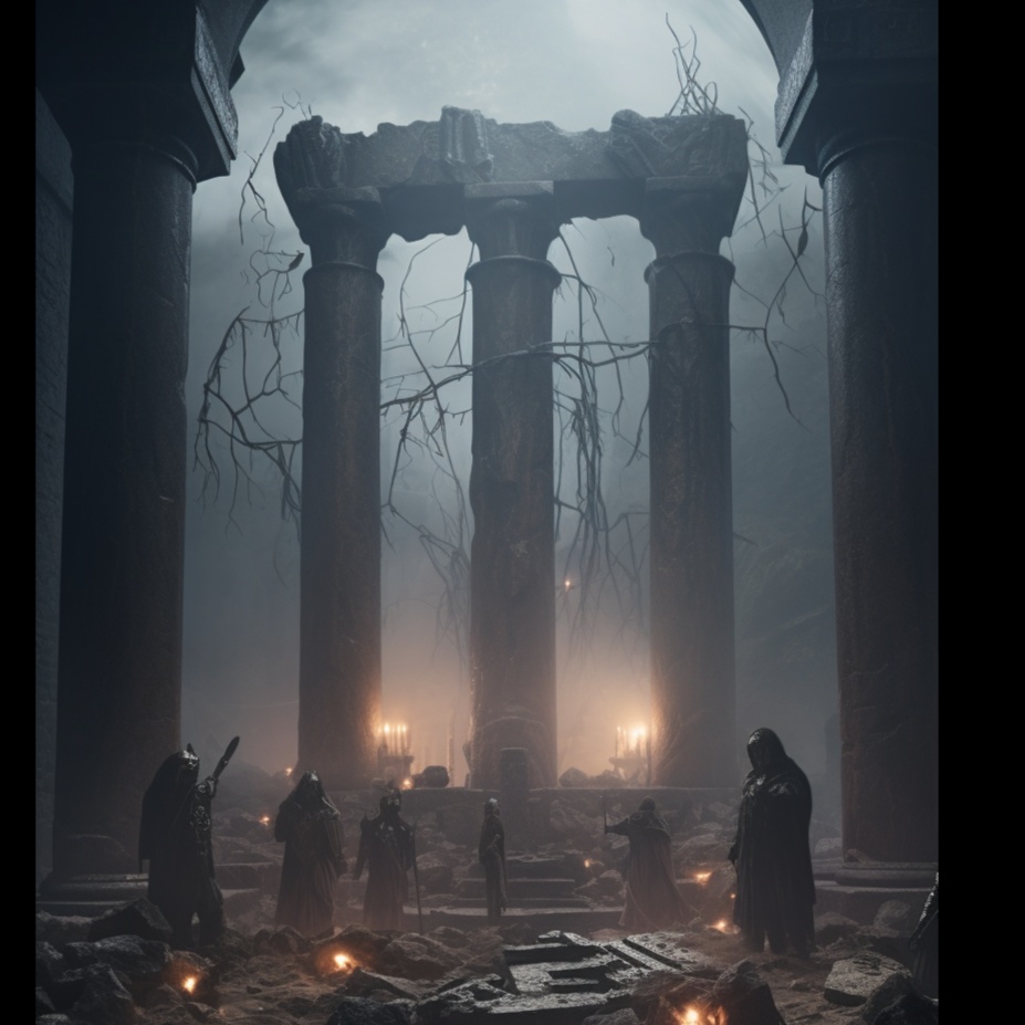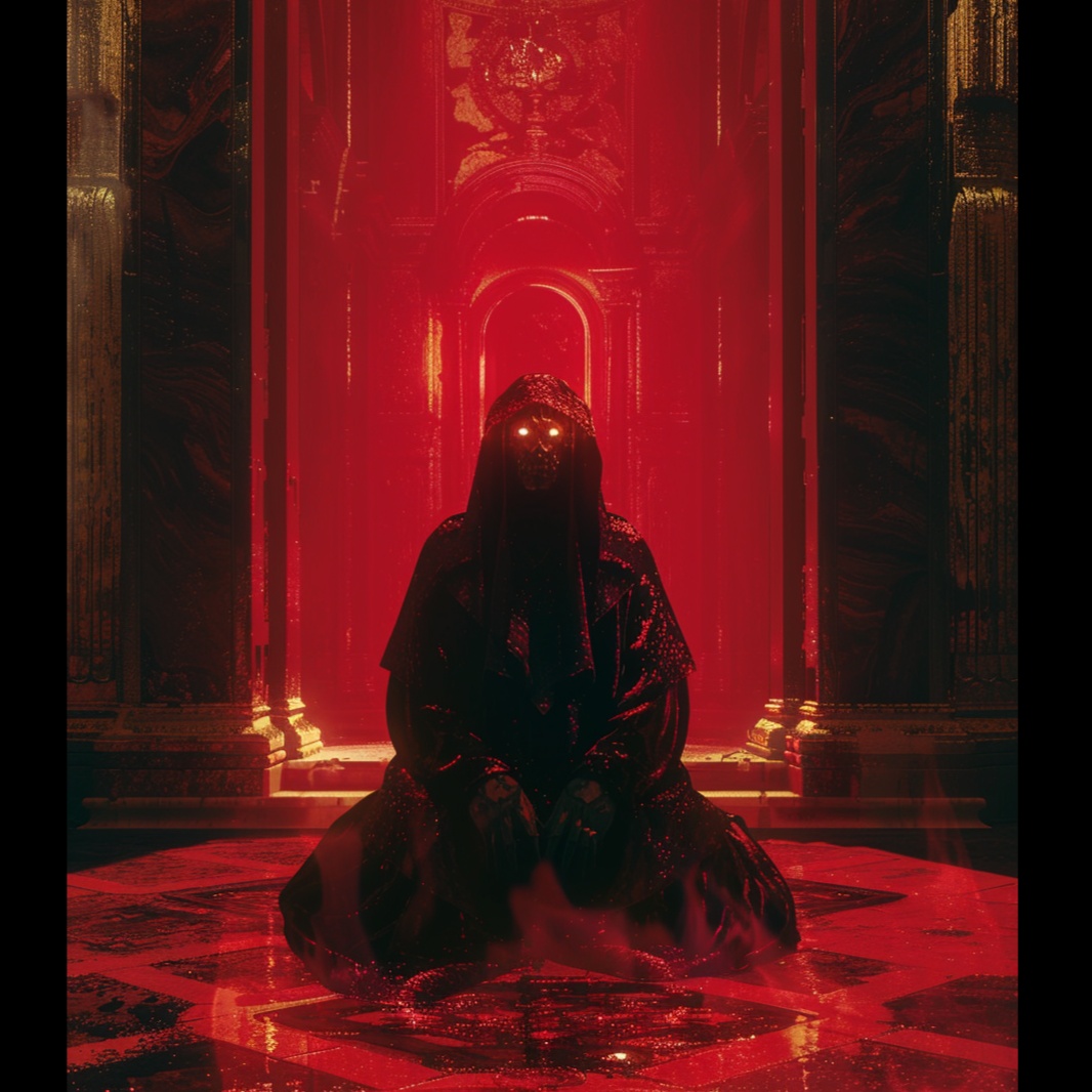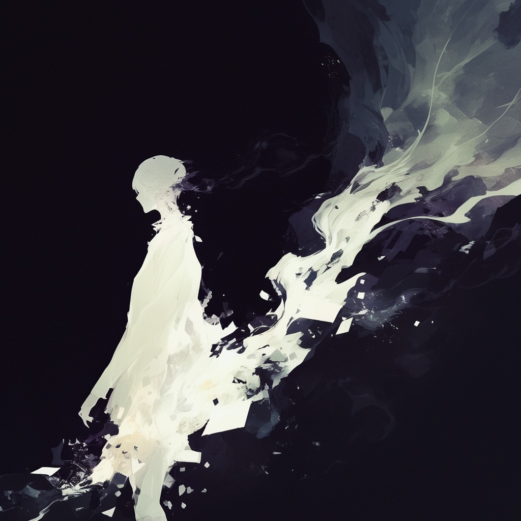 A dark ritual psybient composition where forgotten souls chant in a sacred feminine voice, The piece opens with fading light and distant drones, symbolizing the last breath of reincarnation, As the world collapses into shadow, ritual drums and glitching drones rise, Low-register female chants in an imaginary sacred language echo like an ancient prayer — calm yet terrifying, resembling Japanese folk ritual singing rather than classical choir, The sound is ethereal, haunted, and divine — a requiem for souls lost to the shadow, Condensed Summary