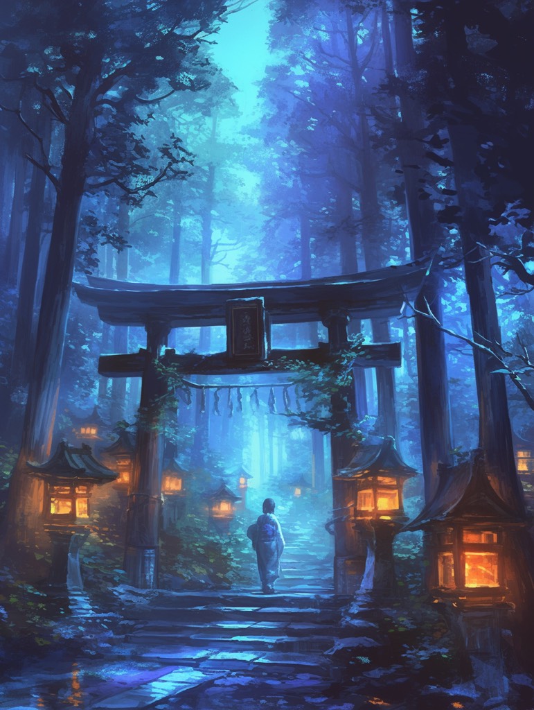 Dark psybient ritual with low-register female chants in an imaginary sacred tongue, Ethereal and terrifying, inspired by Japanese folk ritual singing