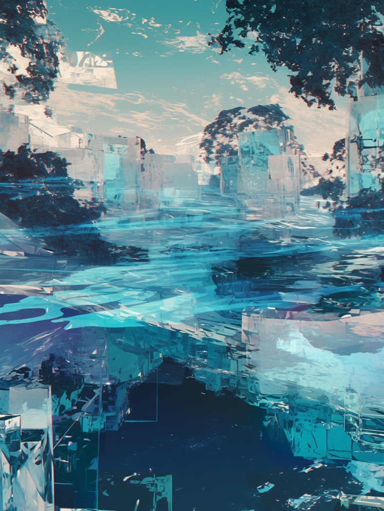 Minimal ambient, Psybient, underwater, abstract, slow, glitch, ambient noise, dark ambient, floating, synthetic, surreal, deep reverb, formless, subdued, ethereal voices, fictional language, Bulgarian choir style