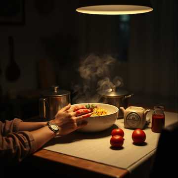 Italian singer‑songwriter, theatrical pop, ironic cabaret, acoustic Mediterranean folk con subtle EDM pop accents, Warm organic sound, nylon guitar, mandolin, fisarmonica, pizzicato double bass, tamburello, brushed drums, light clarinet, upright piano, small strings, Catchy chorus, smiling irony, vivid storytelling, lively pulse, quirky pauses, family‑table atmosphere, Village festa meets small theater stage, Poetic but simple, lightly absurd but elegant, very singable, intimate but cinematic, Festive swagger, comic momentum, mock‑dramatic phrasing, ensemble interjections, stop‑and‑go dynamics, bustling trattoria energy, Subtle minimal EDM accents, light electronic sparkle, tiny festive bounce, clean modern transition FX