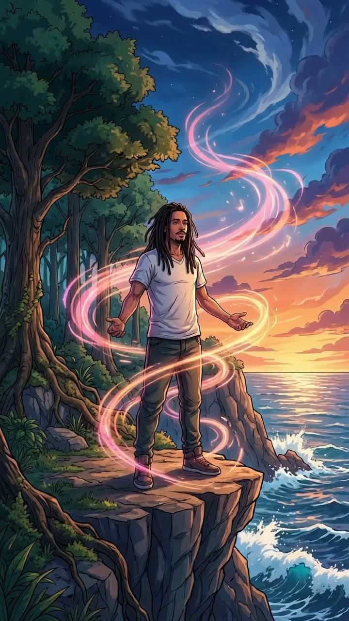 Epic cinematic fusion mixing tropical trap, reggae-soul, and orchestral drama, Starts ethereal with soft choir and ocean echoes, then builds into layered rap-singing with deep 808s, steel drums, and thunderous harmonies, Tempo shifts, dynamic vocal layers, and multiple sections like Bohemian Rhapsody — from smooth verses to explosive anthemic choruses, Emotional, spiritual, and powerful energy, FuturoXX leads with confident vocals, choir chants, and psychedelic bridges, Bright yet dark, cinematic thunder vibe