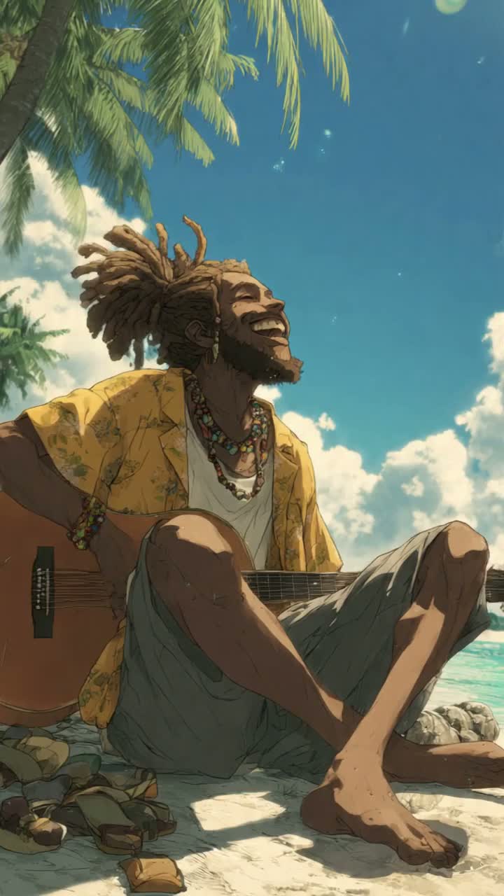 Bright reggae–rock fusion with tropical energy and raggamurphy vocal flow, Happy 808 groove, funky guitar skanks, warm bassline, brass stabs, and soft whistles, Add short guitar solo halfway and longer expressive reggae-rock solo near the end, Smooth island rhythm, upbeat tempo, sunny beach mood, feel-good melody, catchy hook repetition, love-and-freedom vibe, vibrant and playful tone, ‑house, ‑drill, ‑acoustic