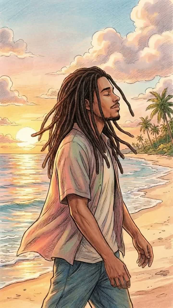 Tropical reggae-soul version of “With a Little Help from My Friends” with ragga vocals, live brass, and joyful harmonies, Features bright whistle intro, island percussion, and two guitar solos — a short playful one mid-song and a long emotional reggae-rock solo near the end with horns backing, Happy, sunny, spiritual vibe celebrating love, friendship, and the herb, blending roots groove with uplifting energy