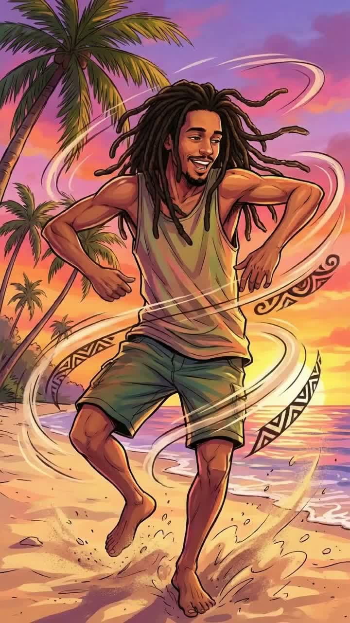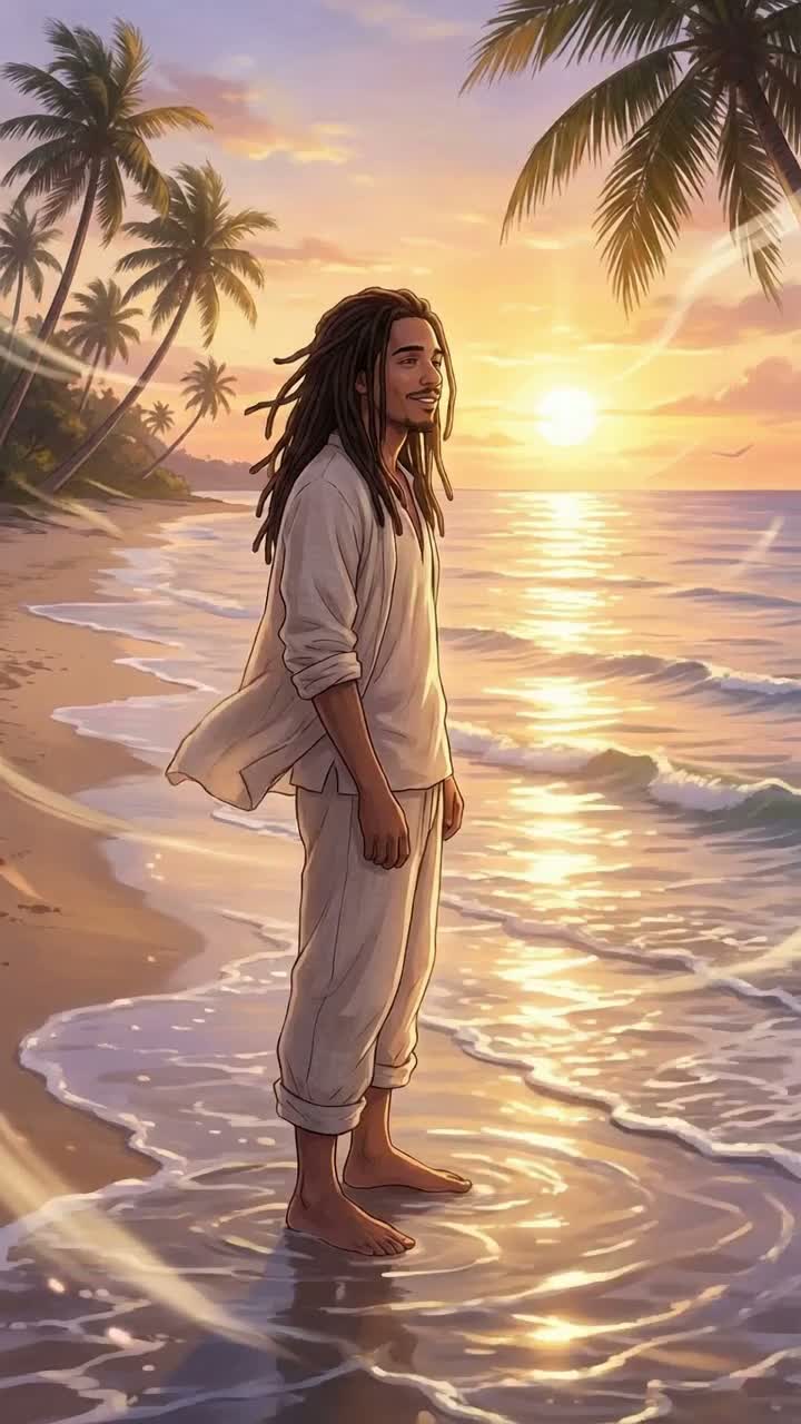 Uplifting reggae roots fusion with ragga vocals, trumpet, trombone, and bass solos, Sunny tropical groove with steel drum accents, choir harmonies, and light whistles, Medium tempo, warm 808 bass, and smooth island guitar skank's, Happy and spiritual tone mixing classic reggae brass and modern chill rhythm, Feels like a golden beach jam at sunset — love, surf, Jah, and freedom