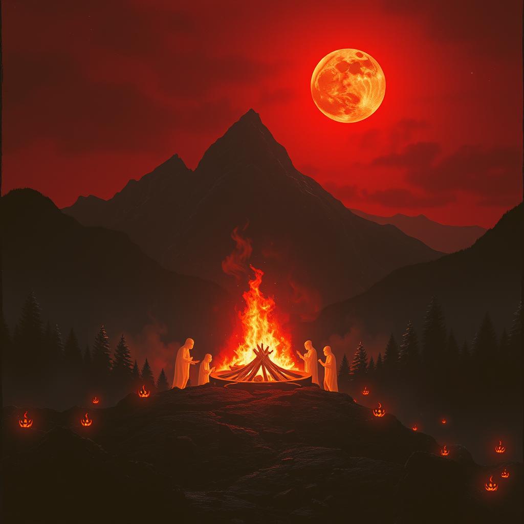Dark Celtic ritual rock, 82 BPM, D minor, Deep male baritone, half-spoken, half-sung, Slow tribal drums, Hammond organ, slide bass, Uilleann pipes, Theme: ancient Samhain born in Galicia, fire, spirits, night wind, Cinematic, mystical, ends in whispered “Samhain…”