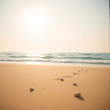 Environmental sounds: Footsteps, sand, water splashes, hand splashes, small shells, water surface splashes, and light wind positioned for surround effect with random variation